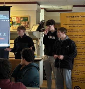Top Left L-R: HUNCH Advisor Matt Heer, HUNCH Students Curtis Key, Maddox McGuire, Miles Cummings, Optimist President Bob Hundhausen and Optimist Member Dianne Jentz. Missing from photo: Students Tyler Sasse, Guthrie Cline and Alex Williams. Bottom Left L-R: Hunch Advisor Matt Heer, HUNCH Students Curtis Key and Maddox McGuire. Bottom Right L-R: HUNCH Students Guthrie Cline, Alex Williams, and Tyler Sasse.